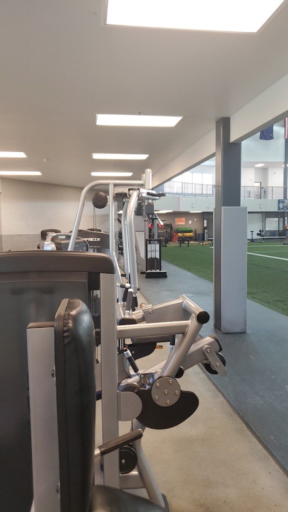 A great gym! Has free and nautical weights. Indoor soccer field also can be used for football. Has a swimming pool.
