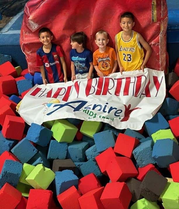 Aspire Kids Sports Center: Building happy, healthy kids! Join us for Gymnastics, Acro, Trampoline and Tumbling, Swimming lessons, Dance, Martial Arts, Parents Night Out, Open Gym, and Camps. Our classes and events are designed to nurture strong bodies and minds while having fun!