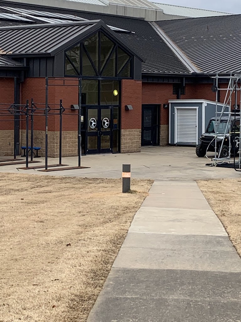 Great place to work out!! Great track, with guides on the wall. Also has several areas with multiple pieces of equipment to work different parts of the body. Offers showers, bathrooms vending machines and much, much more!!