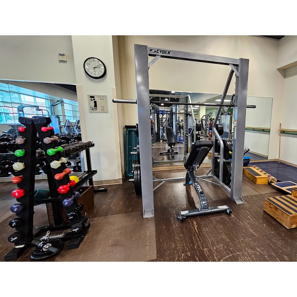 The Center for Exercise at Washington Regional Hospital in Fayetteville, Arkansas, offers a pleasant workout experience with a well-rounded set of Cybex machines, including many with handicap-accessible features, as well as a traditional set of barbells and dumbbells. There are also a great variety of cardio machines, including treadmills, stationary and recumbent bikes, elliptical machines, and rowers, among others.