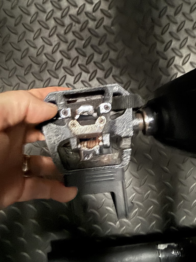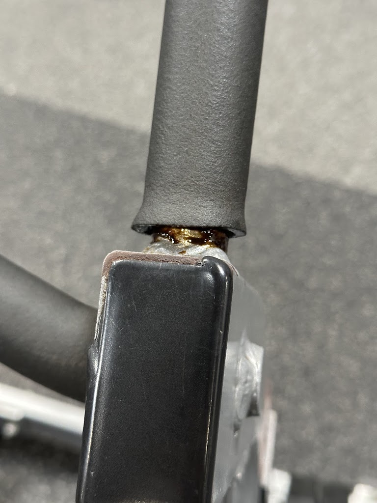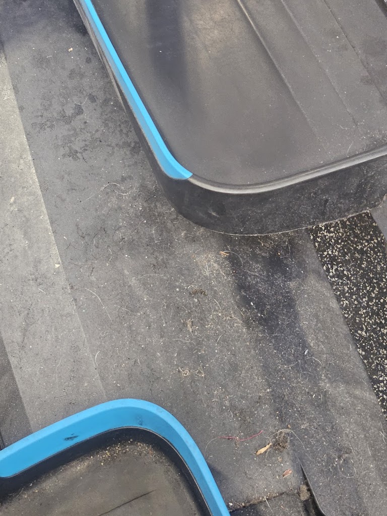 The two photos show how unsanitary and disgusting are the machines, here an elliptical machine which they never clean.