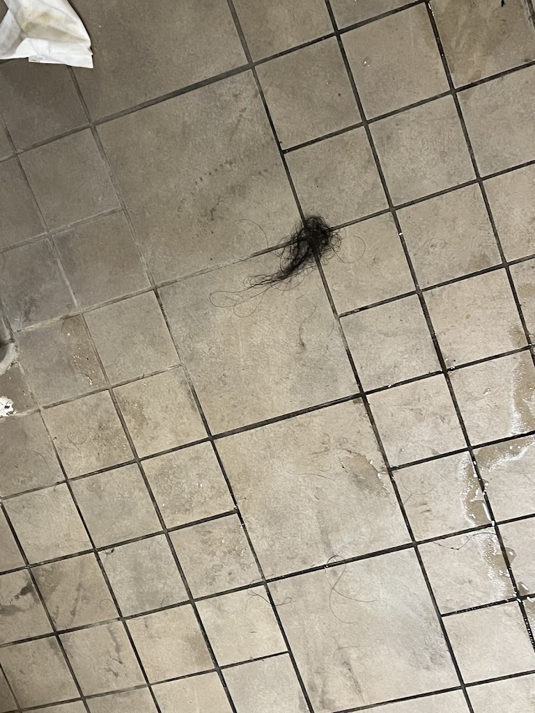 -YES, THAT IS CLUMPS OF HAIR ON THE FLOOR AND WALL