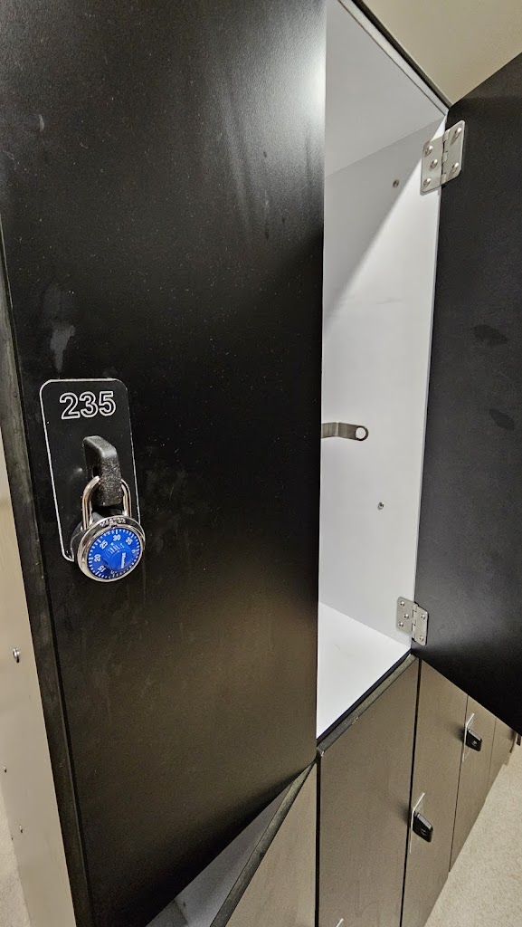 University fitness center with an outdoor pool, climbing wall, gym, spin studio & basketball courts.