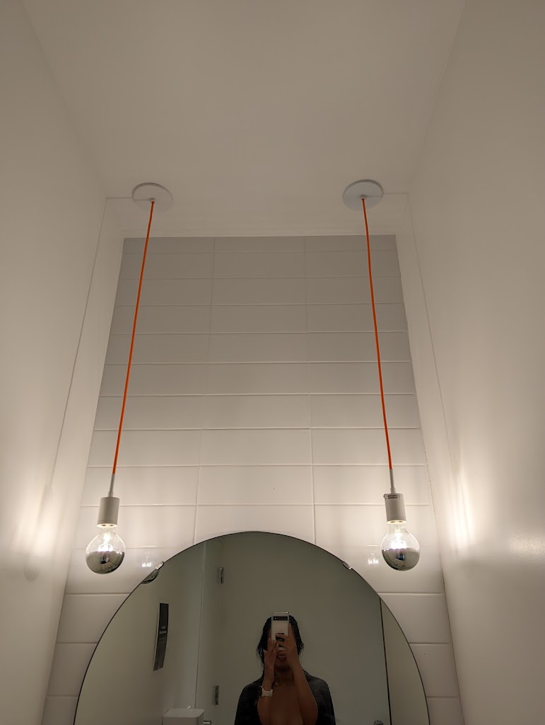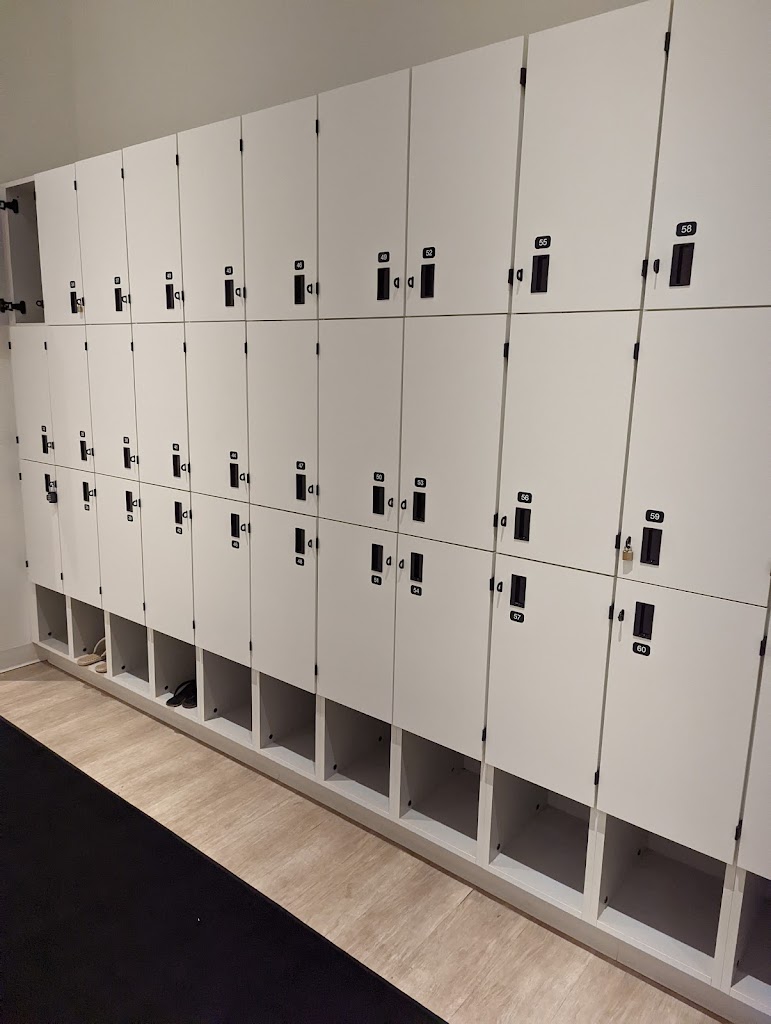 This Marina Del Rey studio has 2 classrooms and 3 bathroom stalls. The bathroom stalls are designed to have a sink, shower, changing bench, towel hooks, toilet and mirror. Ive visited over 15 studios all over the country and this is the first "bathroom stall" I've seen. Not a fan of the concept but I do like the high ceilings and the lighting /decor