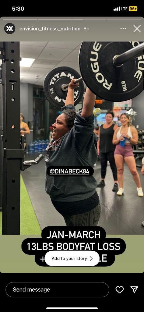 Where do I start. I really needed to get my health, mind, and confidence back together after having 4 kids. I knew I needed to go somewhere that would push me. If I went back to the gym on my own, I honestly probably would’ve given up and been back to square one. I chose Envision because I kept hearing great things about them. Honestly I’m so happy that I made the decision to message them. It was great that they allowed me to try it out first before I committed. The first day I walked in to talk to Christian I wasn’t ready to here the words can you come back for a workout today at 4pm? I said sure hesitatingly. It was hard to be honest. I was so out of shape. I kept telling myself you got this, it will get easier!! It eventually did after a month and a half lol. I’ve lost about 14lbs, and I feel great.