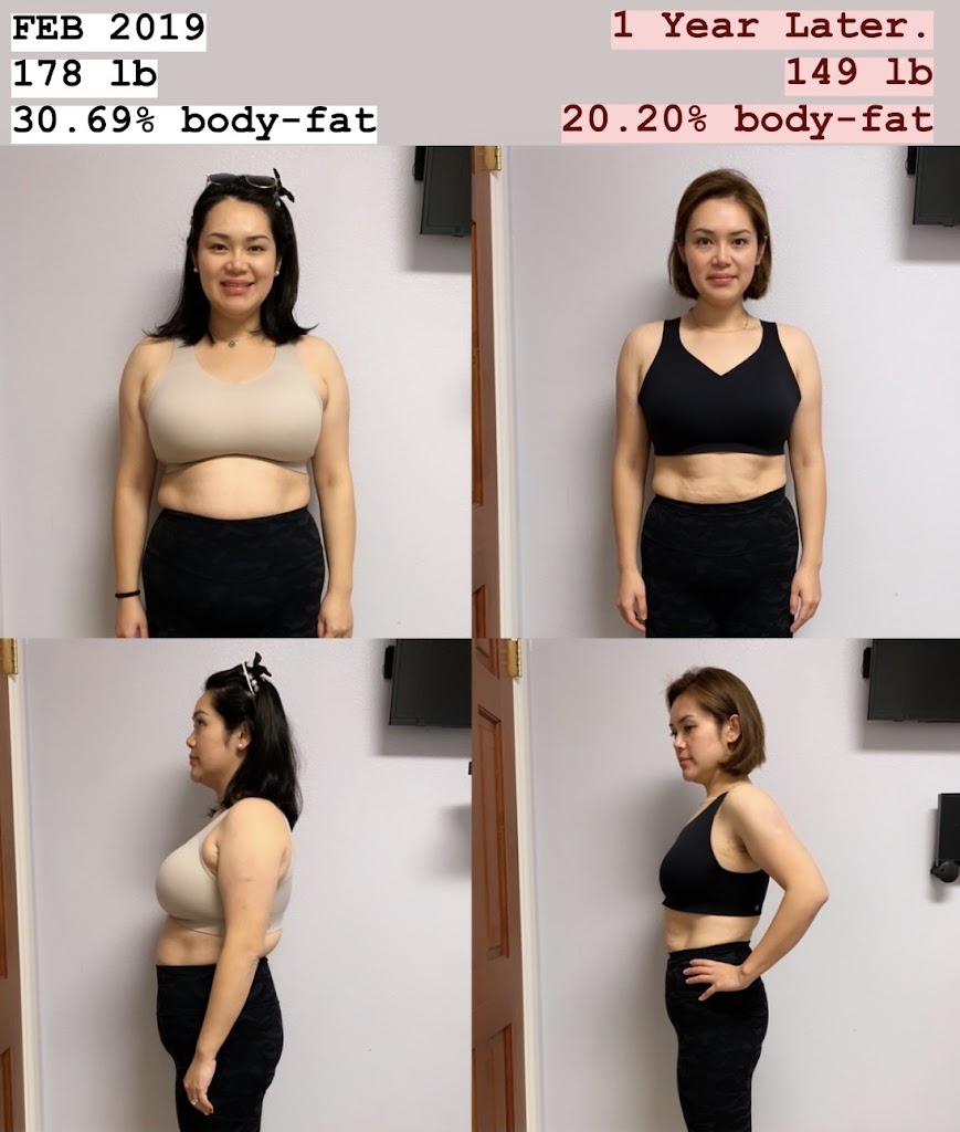 In the past 7 months, I lost nearly 30 lbs, body fat dropped from 31% to 24%. I know I am still not in the best shape, but I am much much happier than before, and full of energy. I have a stronger will to face any obstacles in life and work. My skin is glowing , according to my friend, even I didn't do any Botox.