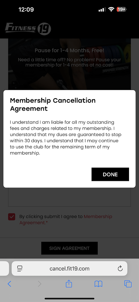 No one explained this to me up front. Please make sure you read the membership agreement carefully before signing. DO NOT agree to anything that feels unfair. Personally, I donβt think this policy is fair at all. This is a gym membership, not a lease for an apartmentβI shouldnβt have to give 30 daysβ notice just to quit. Itβs not like the gym has to go out and find a new tenant to replace me! The rep also told me that when I asked for a copy of my signed agreement, she said she emailed it to meβbut it could take up to 48 hours for me to receive it. On top of that, the rep said there was nothing else she could do because itβs Fitness 19βs policy, and if I want to dispute it, I have to call my home gym directly. This is such an inconvenience and honestly a ridiculous policy that takes advantage of people without them realizing it.