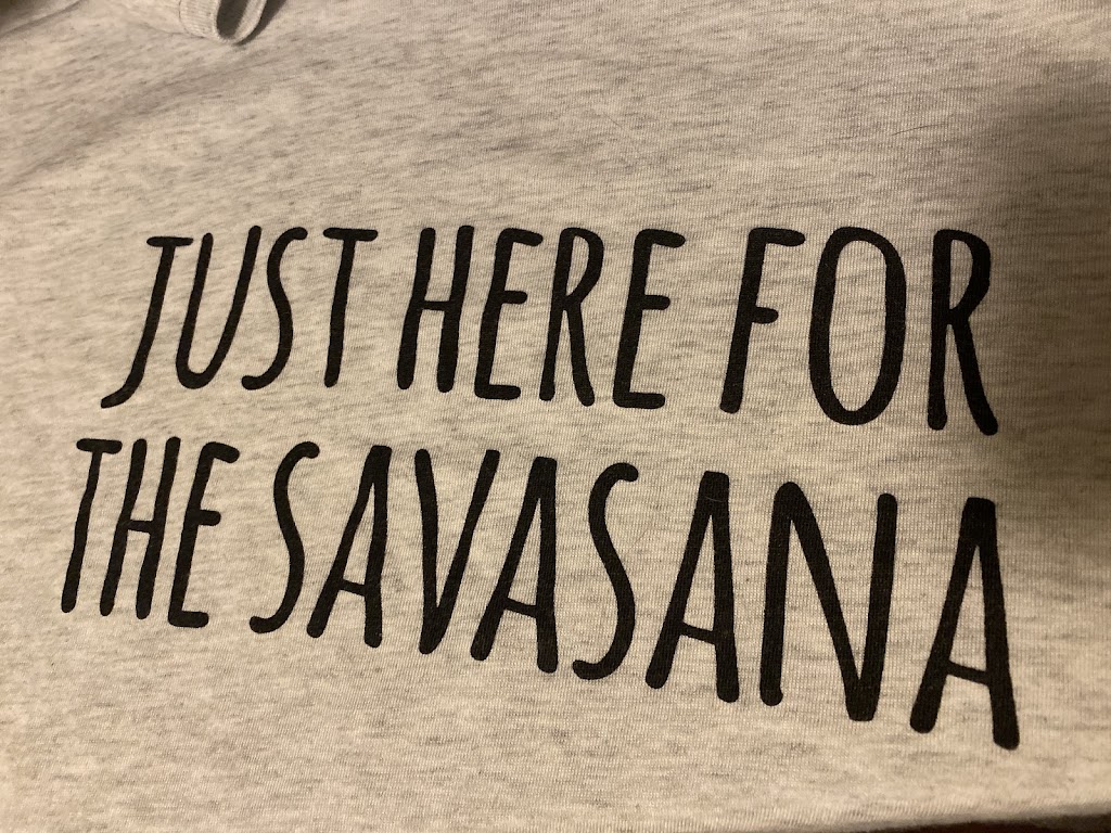 Flow Yoga is super beginner friendly. I thought I could never comfortably do downward dog, but I feel my wrists getting stronger and I don’t feel that terrible wrist pain anymore. I’ve only been to 13 classes, but I’m truly in love with yoga now. If you’re nervous, definitely ask which teachers to pick for a more beginner class. I mostly go to mixed levels flow, but I’ve also done a beginner workshop and the trapeze yoga class. The teachers are patient, explain what you’re doing and why you’re doing it, and make it fun. They allow you to be super immersed in the class and your practice, but also they have a sense of humor and lighten the mood which makes us all more willing to try a new pose or position. I never even went upside down on monkey bars as a kid, but I was able to go upside down suspended in the air in the trapeze class, as I said- very beginner friendly! I bought this Flow Yoga shirt that says “I came here for Savasana” because there’s nothing better than the clarity and peace of mind you get in the Savasana pose at the end of every class. Love this place!
