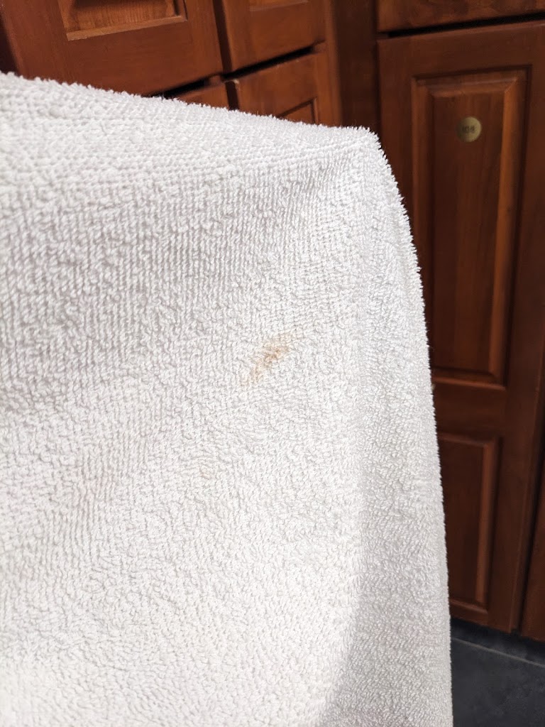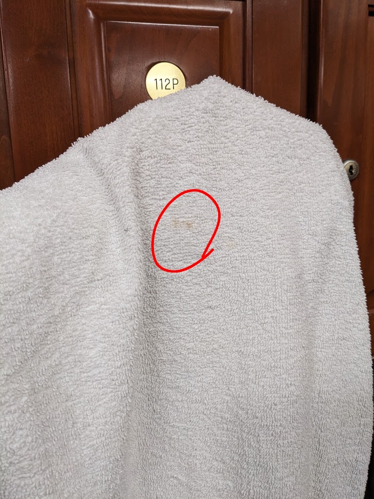 I am lowering my review from 3 stars to 2. Updating this review after about a week from the original review. I grabbed 2 shower towels and both were disgustingly stained. I will keep adding pictures of the stained towels.