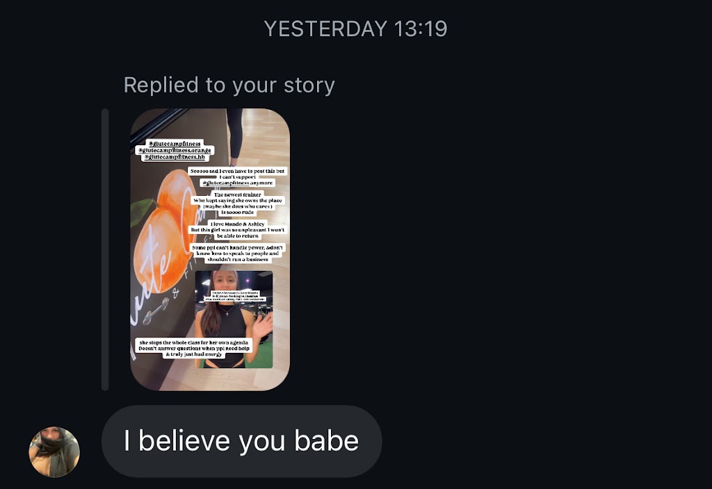 Glute Camp has done a great job of creating a safe space and community for women to come and work out. It is always clean and well organized. The coaches are knowledgeable and you can feel their care. The classes are made for all levels so whether you are new or experienced they have something for you :)