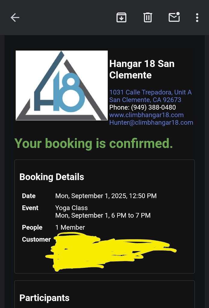 I love this place. Been climbing about a year now. I've visited a handful of Hangar 18 gyms in socal, and San Clemente is hardcore. Their v2 and v3 feels like a v4 elsewhere. Climbing is a great sport where you can feel progress while still being challenged. Highly recommend for anyone looking to better themselves and conquer inner fears