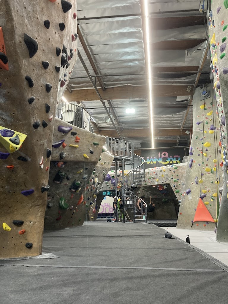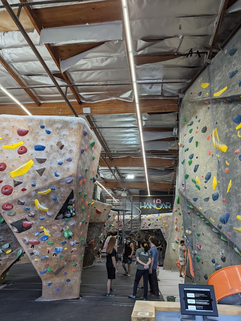 I've been here three times so far, and unfortunately, it's the only Hangar that I have been to that will receive 4 stars. Mostly because the holds for the routes here feel really janky and old. The overall experience of rock climbing is still here. The routes offer a lot of variety, and they have top rope, auto belay, and a lead climb section. The staff here is friendly and very knowledgeable of climbing techniques and protocol. The bathroom and overall environment are clean. They have a small top out section for bouldering and use the v-system over the tag system, which is always a plus. However, the only issue are half the holds smooth when they probably shouldn't be, most likely through overuse. I've also seen a few slightly painted over holds as well, haha. I'll still visit because, like I said, the overall environment is good, and it's still fun to climb here once in a while, but it would not be my first choice out of all the nearby Hangar 18s.
