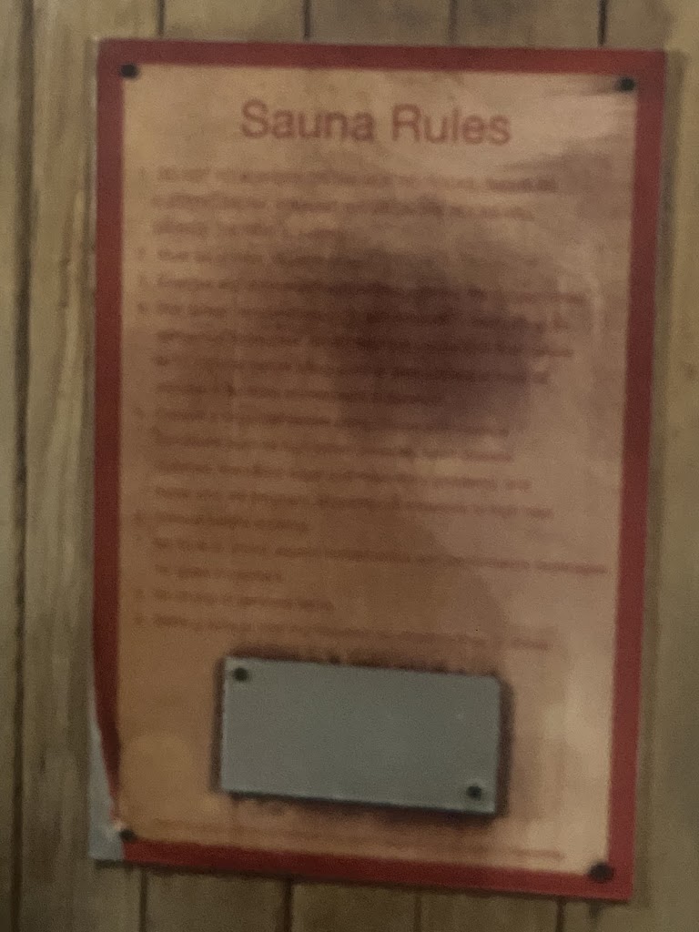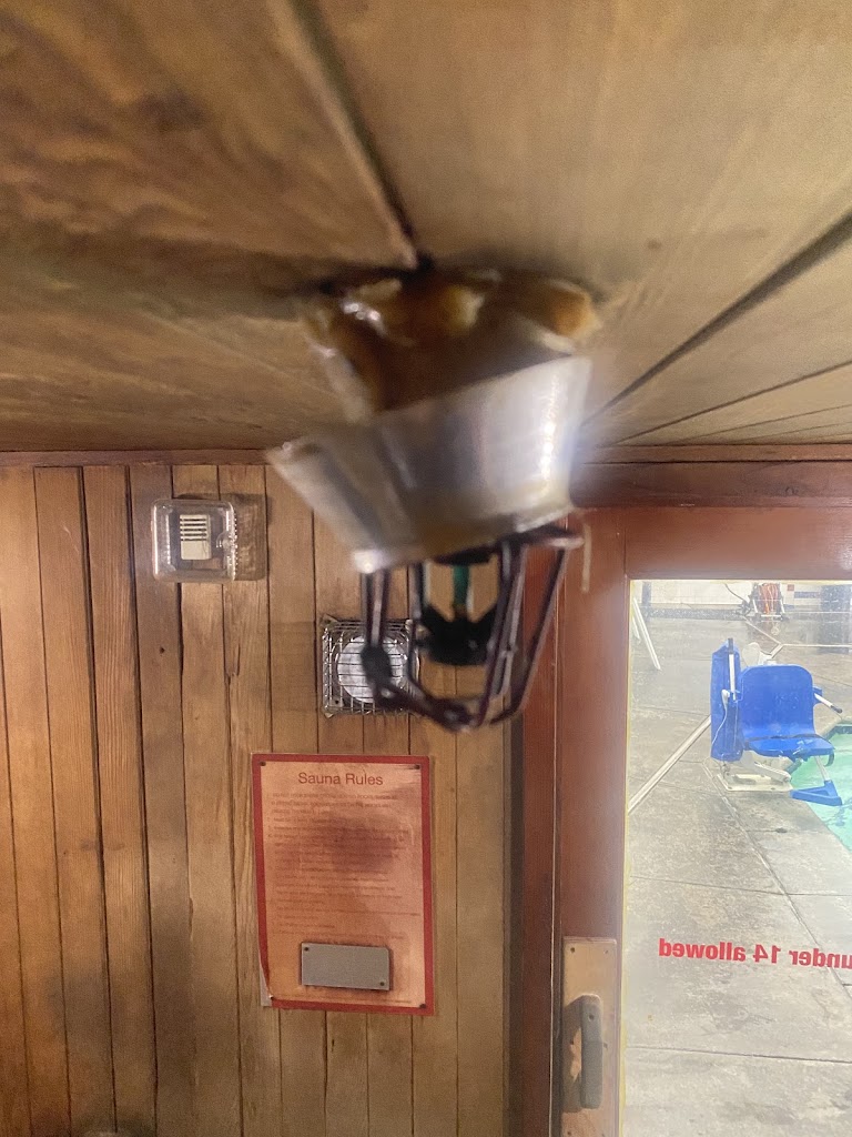 Iβm very disappointed with the lack of proper maintenance in the sauna. It feels unsafe to use β the warning signs are either missing or completely blank, which is concerning. The fire sprinkler on the ceiling is placed too low and needs to be relocated. I personally made contact with it β ouch! This is a serious safety hazard that should be addressed immediately.