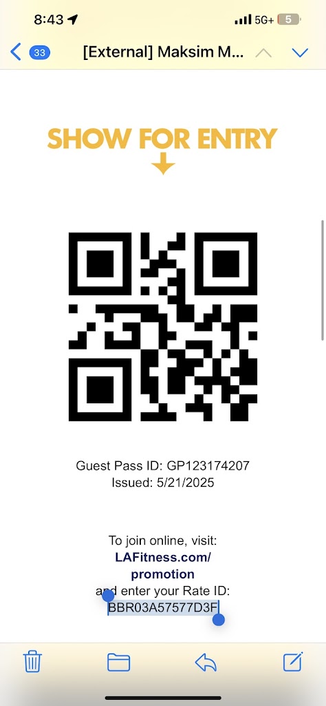 Today, I visited one of your Los Angeles locations after receiving an email invitation with a QR code. The message implied I could attend the facility as part of a promotion.
