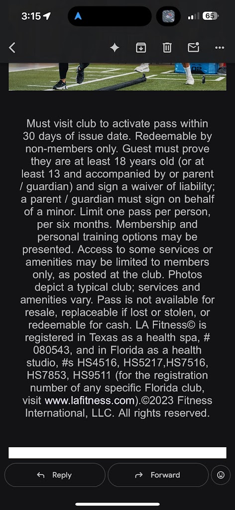 I signed up for the free 3-day pass, but when I arrived at the gym, the front desk told me the promotion was only available to California residents. I don’t have an issue with that, but it would’ve been helpful if that information was included in the main email (see below) sent with the pass. Then I offered to pay the $20 day fee, but they didn’t accept contactless payment. Overall, this could’ve been avoided with clearer information on the website. I ended up leaving and going to another gym.