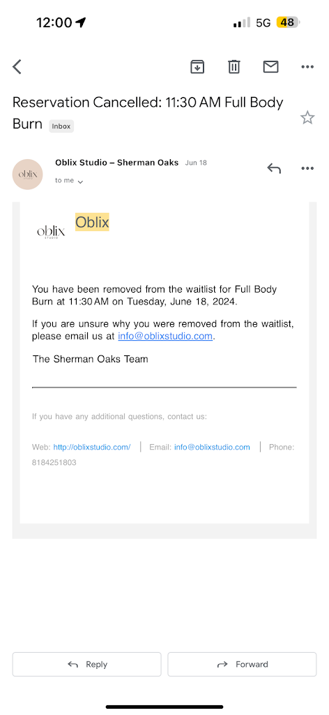 Attached is the email I sent on June 18th per the email on your website. Regarding taking Deena’s class- as I mentioned I was on the WAITLIST. I was told via your website and teacher that if people were missing at the 5 minute mark I could stay. I was then kicked out 10 minutes in over loud speaker. I would not show up as a student in class as I’m sure she never removed me from waitlist. Attached is also email showing I was on waitlist.