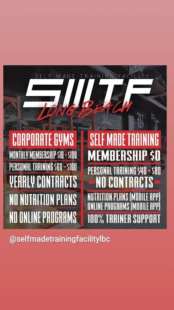 Self made Long Beach gym is a great place to workout in. Never have to wait in long lines to use equipment. Brandon Watson is my personal trainer for a little more than a year now. He is amazing! Always pushing you to do your best and more. He brings new techniques to reach your goals. You tell him what you want to target and he gives you a meal plan and guides you through your workouts.