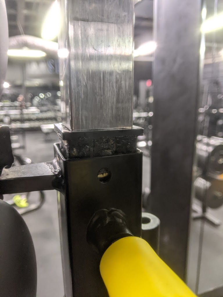 After just a few months, there were cables snapping (at one point a cable was fraying and someone just covered the frayed portion with black electrical tape to hide it), assorted hardware all over the floor. Metal was bent or deformed. The “commercial grade” squat racks are made out of very thin gauge mild steel and you can see the deformation in my photos. Squat racks are short. Benches are uncomfortable.