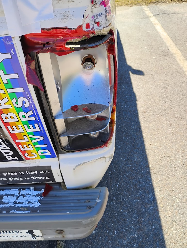 Apparently men driving trucks too big to handle think the parking lot is demolition derby time
