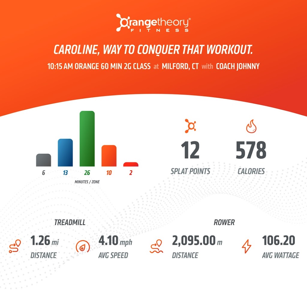 I started working out at orange theory 6 months ago and I LOVE IT. A few months ago, I moved back to the milford/New Haven area and this gym felt like home in no time. The coaches are so enthusiastic and genuinely care about you and your goals. I love the members I’ve met here also! 12/10 would recommend!