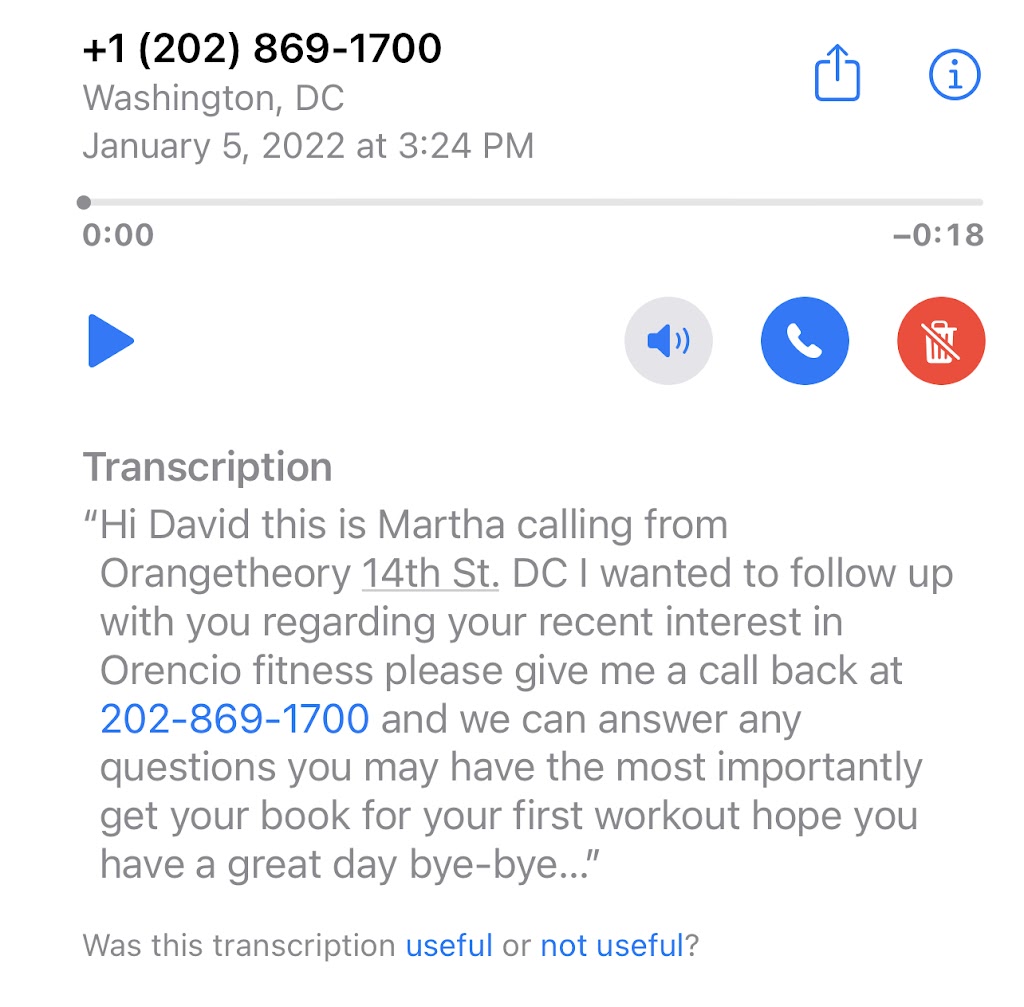 On February 12, 2022, I visited the Orange Theory on 14th street after responding to an advertisement on Facebook/Instagram. It said if I signed up I would receive a free class. I put in my email and did not respond to the repeated calls to get me to come try their studio (see virtual voicemail messages from studio). Finally, after many calls I picked up the phone and the associate convinced me to sign up for a class. They said it would be free and that when I attend I just need to arrive early and fill out my paperwork online before class. I did all that and was at the class.