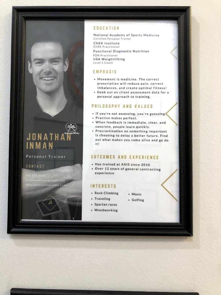 I cannot say enough good things about Axis Training Studio and its staff including Jonathan, Jake and Zeke. The training is individualized, thorough and effective. The training and nutritional advice I have received is helping me achieve the "ultimate makeover;" not only changes in my appearance but whole body improvements along with increased strength and stamina.