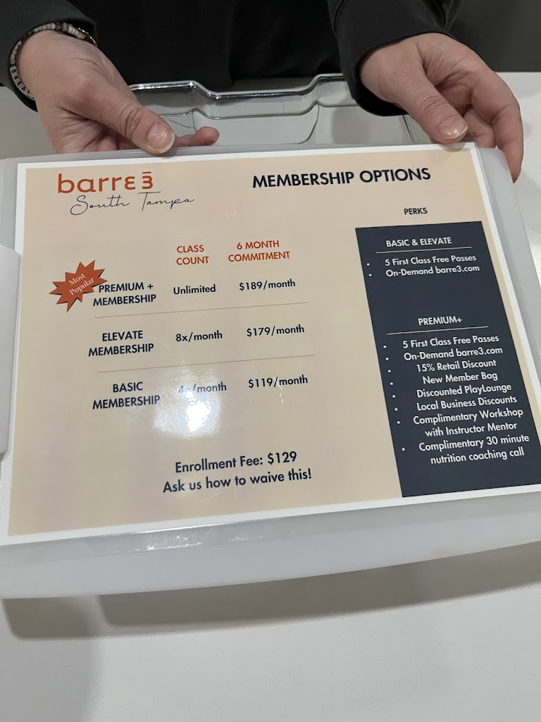 I love Barre 3 in South Tampa. The staff is always so welcoming and makes a point to learn your name and welcome you to class. The instructors are uplifting and help push me to do my best! Update: still love it after 4 months ❤️❤️