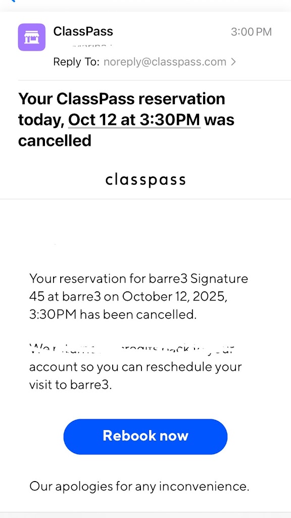 Downtown for a class 3:30 pm booked through class pass - itβs 3:10 and the studio is closed. Google also says it closes at 1pm but I relied on class pass