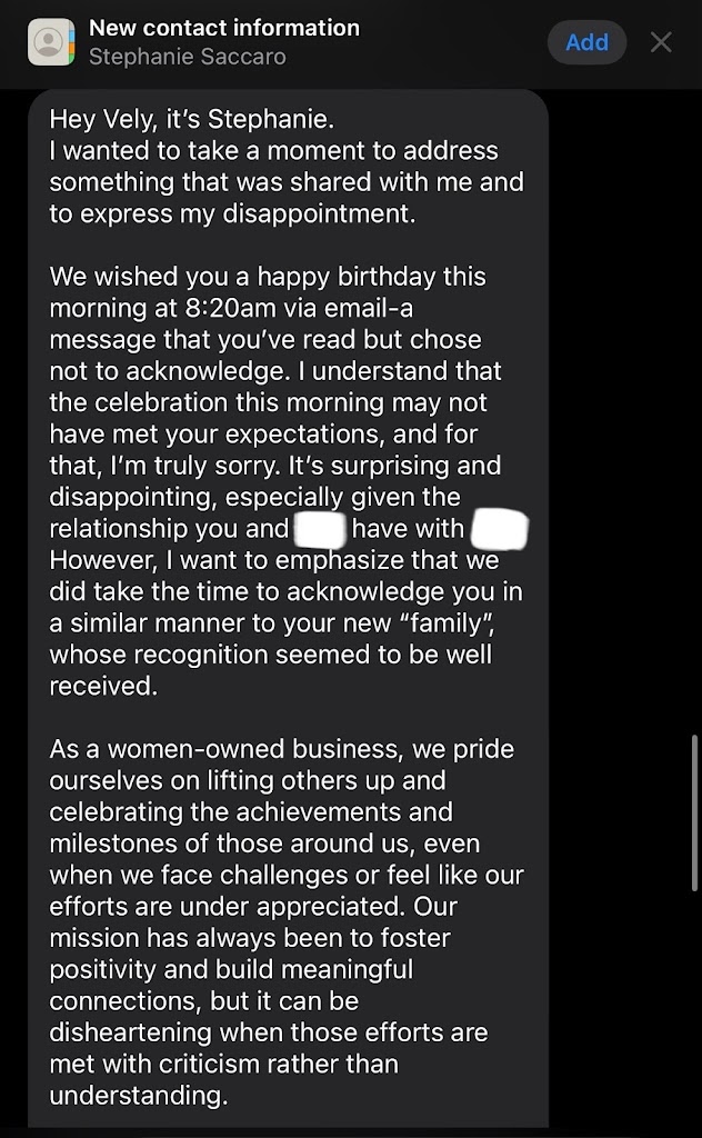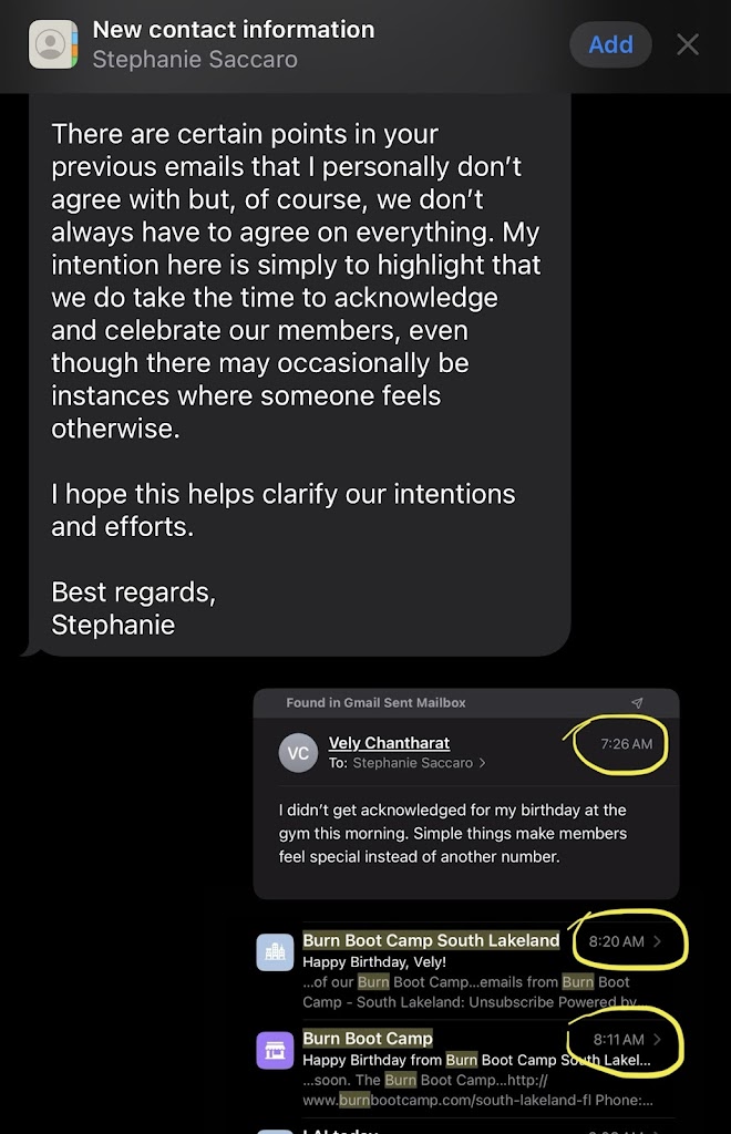 THE UGLY: one of the owners, Stephanie texted my personal phone to “express her disappointment in me” ON MY BIRTHDAY that I posted an Instagram/Facebook story of another gym I also go to that sent me a personal happy birthday text. I’ve attached the screenshot of her message for reference. In her text she said “I chose not to acknowledge her birthday emails.” In which I replied back with a screenshot of timestamps where I sent my email first almost an hour before she sent hers.