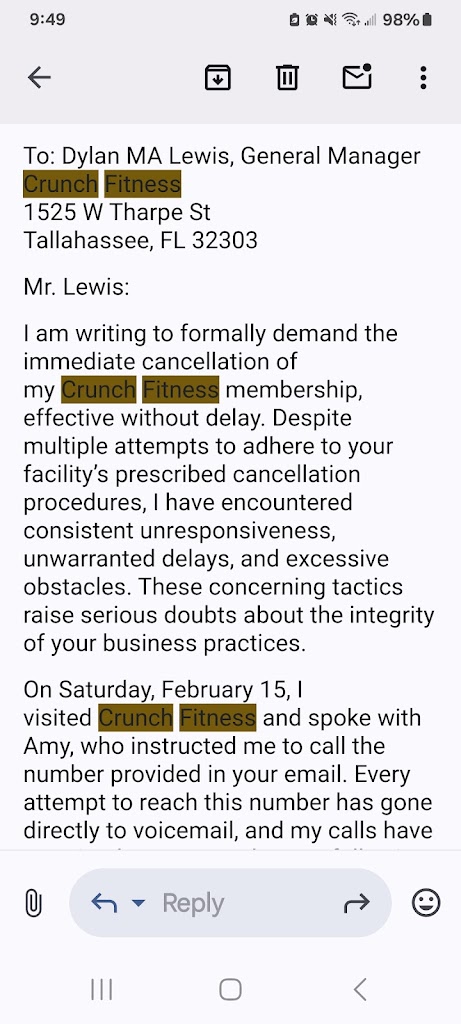 DO NOT SIGN UP WITH THIS GYM. I went here during my time at FSU, and once I graduated in Spring 2023 I attempted at least 10 different times to cancel my membership over the phone and over email. I was also told by an employee named Noah on May 9th, 2024 that I would have my membership canceled and be refunded for the past 6 months since I provided proof of prior efforts to cancel as soon as his manager signed off on it and there was complete radio silence following that. They refused to answer any emails at the listed address and the only way I was finally able to get the circus over with was to take every card off file until it got terminated and sent to a debt collector. Overall was robbed of hundreds of dollars for well over a calendar year while halfway across the country, and if you want to avoid the headache just go literally anywhere else.