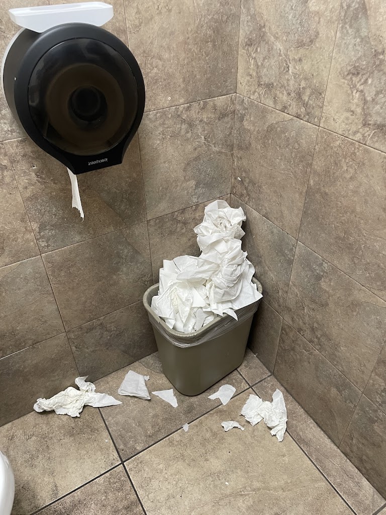 Men’s bathroom is consistently dirty and foul smelling🤢there is not even toilet seat’s👎