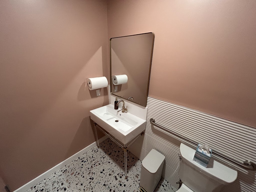 Flow Haus has a calm and welcoming feel. The studio is bright and modern, with a beautiful grey, warm/dark pink and taupe color scheme that makes the space feel really peaceful.