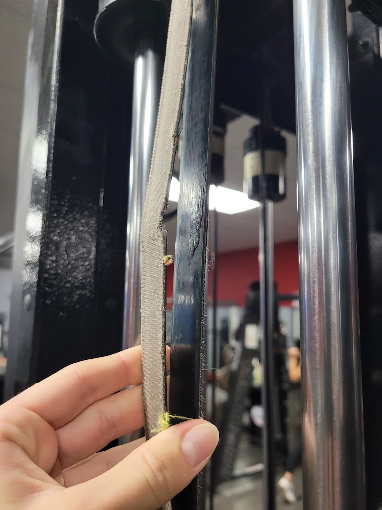 It's an okay gym - they have everything for you to get a good workout in hence the 3 stars. I love meeting people here and the staff are super sweet and nice. BUT all the equipment is so old! The cables need to be replaced (see picture) - that will snap at one point and hurt someone. The dumbbells need to be replaced (see picture) - all the plastic is coming off it and particles fall on your face or into your eyes while doing chest press or similar exercises. They should put wooden platforms instead of rubber mats at the squat rack. And just replace other equipment that is absolutely super rusty. Honestly, it's concerning because it feels like at any point any piece of equipment can snap on you.