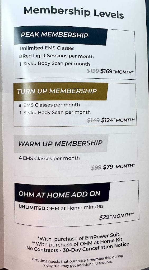 As someone who doesn’t like working out due to having to spend so much time in a gym to see actual results, I absolutely love the efficiency at OHM. Thanks to the EMS the classes are only 25 minutes and results are so fast! Great low impact workouts for short time and maximum results. 10/10 recommend.