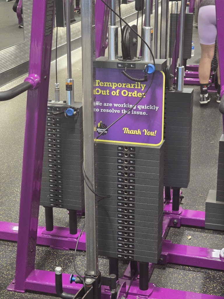 Equipment maintenance is terrible. Been going here for a few months and the same machines are always broken with more breaking constantly. Worse than any other pf I've seen. The other 2 locations nearby are better.