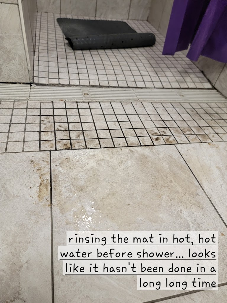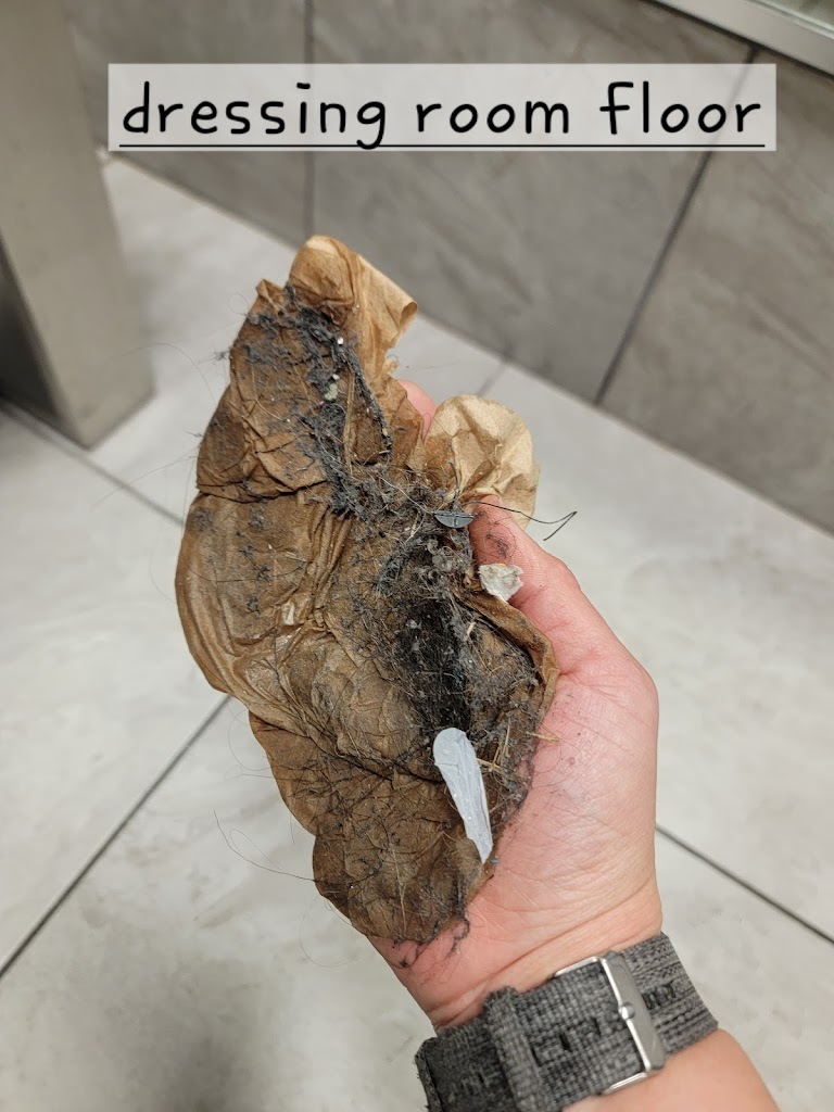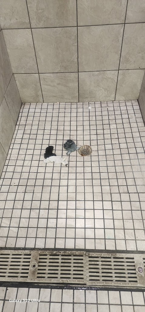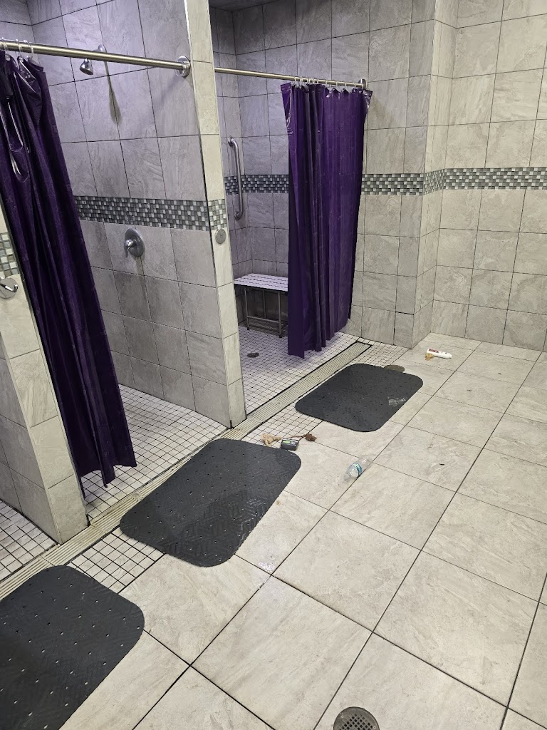 The disgusting bathroom photo photos, are when I kicked trash out of the shower. THREE days later The disgusting trash and balls of hair in the changing room and the shower floor were still outside of the shower! I showed this to a staff member and told that person I was posting this review so they cannot lie about the dates everything is stamped.
