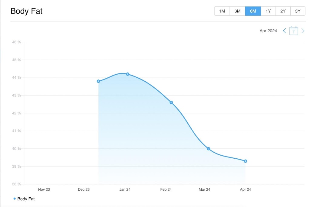 Since February (it’s now May), Joey has had me focused on functional movements—some of which I hadn’t done much of with previous trainers and was initially nervous about, like squats and deadlifts. He’s helped me improve my form and confidence, and the focused training has really paid off. In just 75 days, I’ve dropped 7% body fat (from 32% to 25%) and gained 5 pounds of skeletal muscle. I’ll admit, I was a bit concerned during the first month when the scale barely moved or even went up. But after my 75-day body scan—and simply looking in the mirror—it was clear I was making real, meaningful progress. The consistency, effort, and Joey’s progressive training plan have been exactly what I needed to hit my goals.