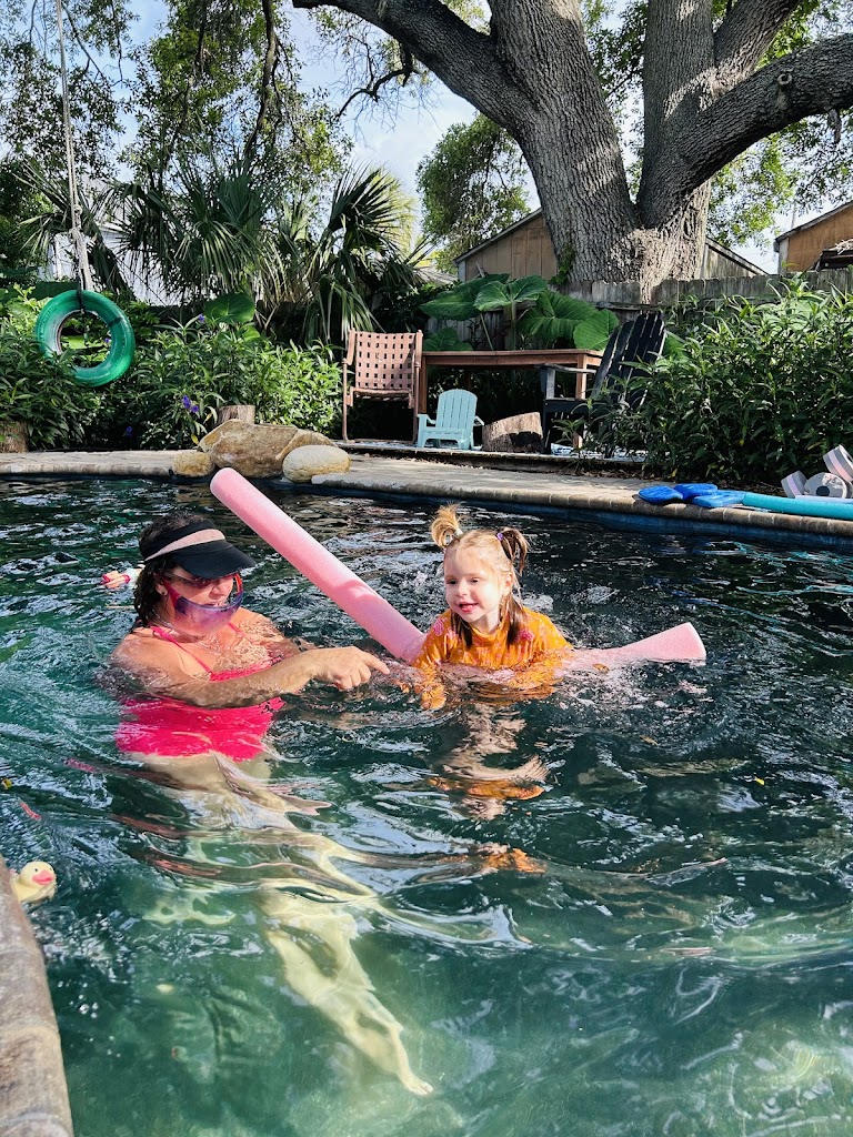 I have been teaching swim lesson since I was 13 and I am 52 now! My dream was to have a pool in my backyard and teach all day. Never said I wanted a 200 yr old Oak tree right over it lol because it's beautiful leaves and branches love to end up in the pool. Just saying the shade is beautiful and it feels like and oasis! But sometimes the leaves are there. Just saying I love what I do. I love my pool I put in for teaching lessons. I love kids lessons and I really love seeing adults learn. The lessons can be scheduled around you. So just tell me what is good for you! I teach all the time in the pool if the air is 65 and the pool heated to the 80s. I do heat the pool. Come try me out and learn to swim. You or your child will learn.