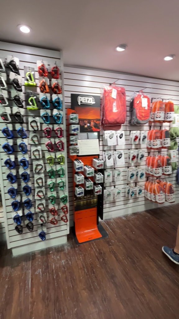 Gear shop has great selection, shoes, harnesses, chalk bags, and more.