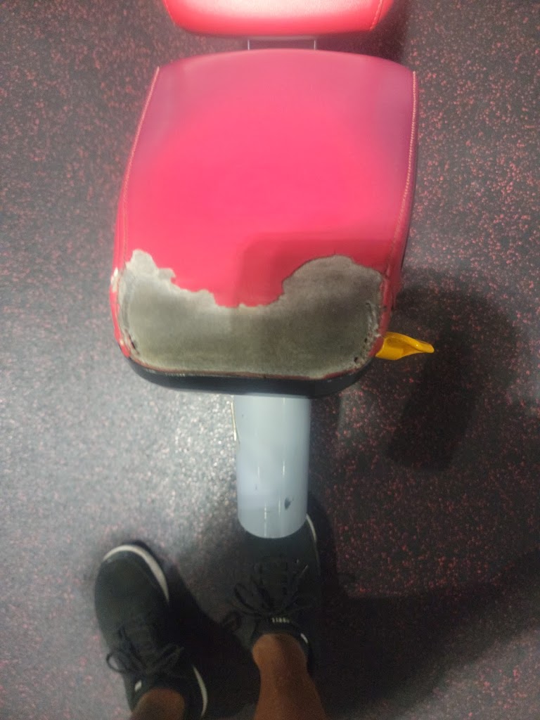 Dirty gym. Worn, broken and damaged equipment. People filming in the bathrooms.