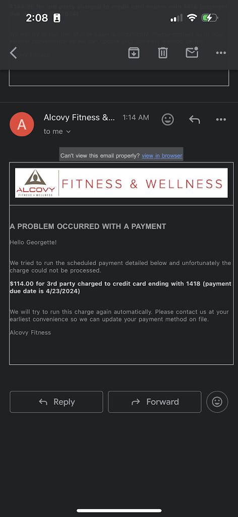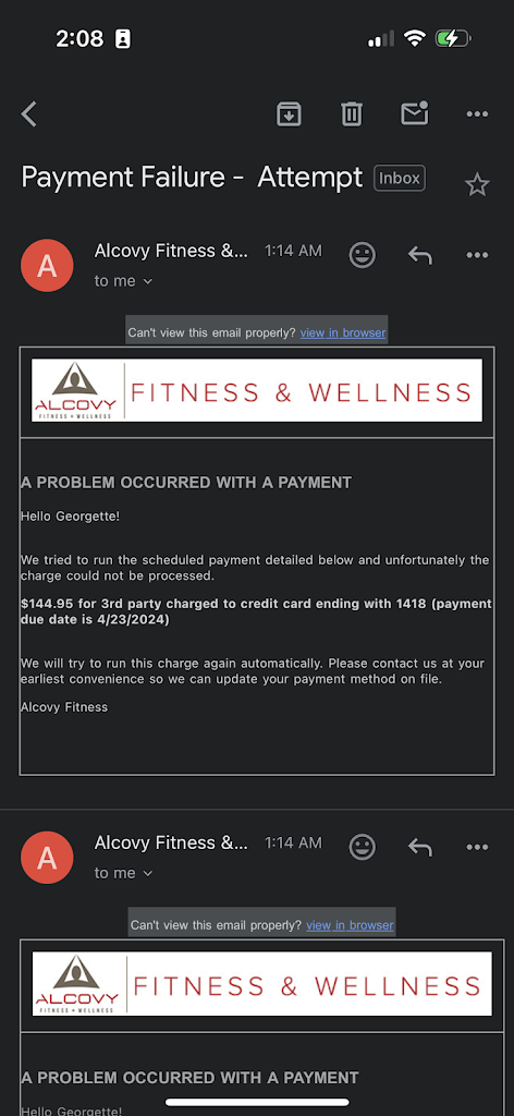 SCAMMERS!! The short one with the cap (Sarah) Tried to steal almost $1200 from me. I hadnβt been to their gym for a while due to my financial situation changing and finally was able to start going back. She initially told me that I owed them $160 but that she would settle for $115. She then stated that she could get me back up and running for that amount plus $29.95 making the agree upon price $144.95. I gave Sarah my credit card and waited in the waiting area all of five minutes before Sarah returns and says my card is saying βfraudβ when she tries to run it. Confused, I asked her why because Iβd literally just used it the day before and it worked perfectly fine. Sarah told me that she didnβt know.. I took her for her word and gave her an Amex card next. When she returned to her office i open my cell to a text message from my bank regarding possible fraudulent activity in the amount of $1144.95 (a whopping additional $1000 more than the agreed upon price ) Quickly, I ran to her office and showed her the text message and told her that the reason why it didnβt go through was because she was trying to charge me $1144.95 . Of course she told me that it was a mistake and invited me into her office to watch her input the amount. It initially said $144.95.. I look away and down at my phone a couple seconds, I looked back up and the next screen said $1,144.95. I pointed this out to her again (for the 2nd time now).. from there, she apologized a second time and told me that I didnβt have to worry about this bill anymore and that she was going to take care of it. She never said that she was scheduling for a later date, never gave a receipt, her exact words were, β Iβm about to make your day, Iβm going to take care of this balance and you donβt have to pay anything but the monthly balance of $29.95 moving forward . She then proceeds to give me a key card and I went about my workout. The next morning, I woke up to an email from alcovy stating that the scheduled payment for $1,144.95 failed and that they were going to try again at a later date. She scheduled the charge to come out later!!! That morning I called to speak with the other owner(PAM) pretty much all but begged to speak to her but the little girl at the front desk (Lindsey) and the βassistant managerβ Valerie absolutely refused to contact her(Pam later called me and stated that she was home and available the entire time) Then proceeded to tell me that I owed over $300 instead of the $160 that Sarah told me that I had a balance of. She then revoked the one month free membership that Valerie and Sarah had given me to keep quiet about the situation Due to me refusing to pay anything anymore. DO YOURSELF A FAVOR IF YOU HAVE BILLS AND NEED YOUR MONEY, RUN FAR AWAY FROM THIS PLACE. THEY WILL SWIPE YOUR MONEY RIGHT FROM YOUR BANK IF YOUβRE NOT PAYING ATTENTION!!