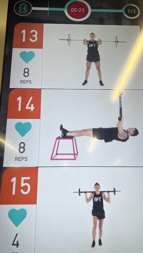 Love BFT and the training format. A good mix of strength and cardio sessions that push me to work harder than I do alone. The trainers monitor and coach form constantly which is helpful for all skill levels.