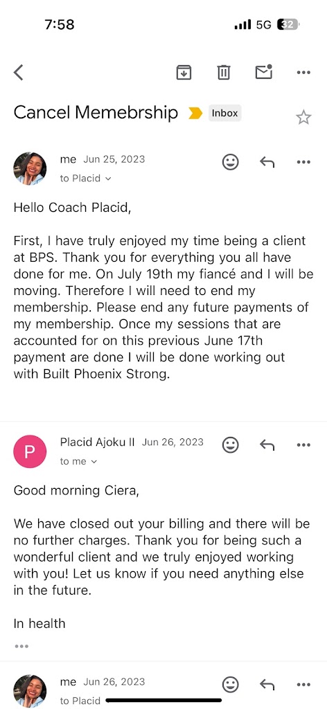 Update 5/29/24 I am sadly disappointed in how built pheonix strong handled my cancellation. I was moving because I got married and reached out to cancel on paper in person and was told that everything was fine. A month after I officially cancelled and left my card was charged for an entire month. I reached out multiple times and was ghosted. Which was unfortunate because of course I reach out to my credit card company and disputed the charge. BPS corresponded with my credit card company and not me with a copy of my contract and tried to say I still owed. I of course put everything in writing and was able to provide our very clear communication to my credit card company and have the charge removed. I won’t say the charge was malicious but I do not appreciate non communication when I was very vocal and willing to talk things through. Please do better BPS as I truly enjoyed my time being a gym member but would not recommend anyone due to how I was handled after I left!