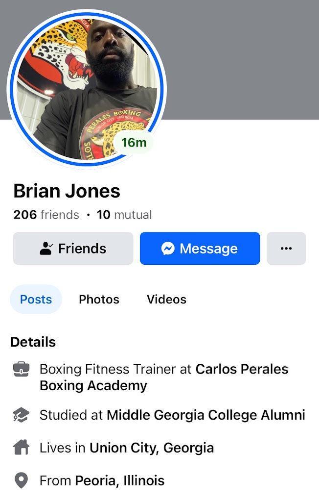 Super nice boxing facility everything is appropriate. I was nervous but wanted to support my friend Brian Jones. Heโs been doing good work here and I see his progress. After 10 minutes and I noticed what I was in for. I was enjoying the difference in work out. I started to sweat profusely and definitely needed a towel and water. Then we put the gloves on and got in the ring and it really turned up. I was sweating so hard. My clothes were sticking to my body. I had to take several breaks lol Trainer Brian supported me the whole way. If you are looking for a really great workout, this is definitely the place. They work with you at your own pace, but you have to say something if you need a break-no problem. Donโt overdo it lol I was trying to be tough but realized I hadnโt worked out in months. Ready to come back to see Brian. It feels good seeing Body definition and using muscles. I didnโt know I had. Flexible hours, good price. Itโs adjacent to the self car wash area