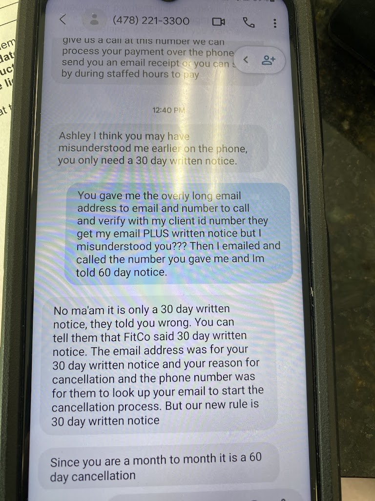 STILL FITHING THS BATTLE 3 MONTHS LATER. Ending a MONTH TO MONTH CONTRACT should not take emailing 60 days in advance and a written notice within 30 days! Just ask anyone what itβs like to end a membership here and I promise you being out of shape is less of a hassel. Let me edit to add the text exchange from today. Itβs clear they have NO IDEA what the terms are. So is the new rule for a year contract a 30 day notice and month to month are 60days? How much sense does that make? I have been told different by everyone I speak to with this joke of a company