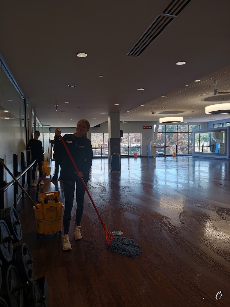 The young people really "pay their dues" with great cleanup. Photos aren't clear but 1 sis moping the Very popular group fitness floor_ right after morning classes. The other is deep cleaning the treadmills in the Cardio Cinema