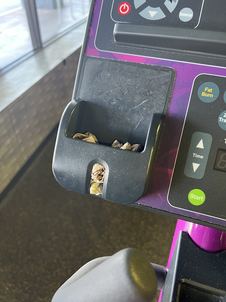 The stations are very dirty. There is an elliptical machine that has had the same paper towel stuffed in it for weeks so I know they donโt deep clean the equipment. The paper towels are usually empty. Front desk people usually stand up front the whole time or are no where to be found. The bathroom always has toilet paper everywhere.