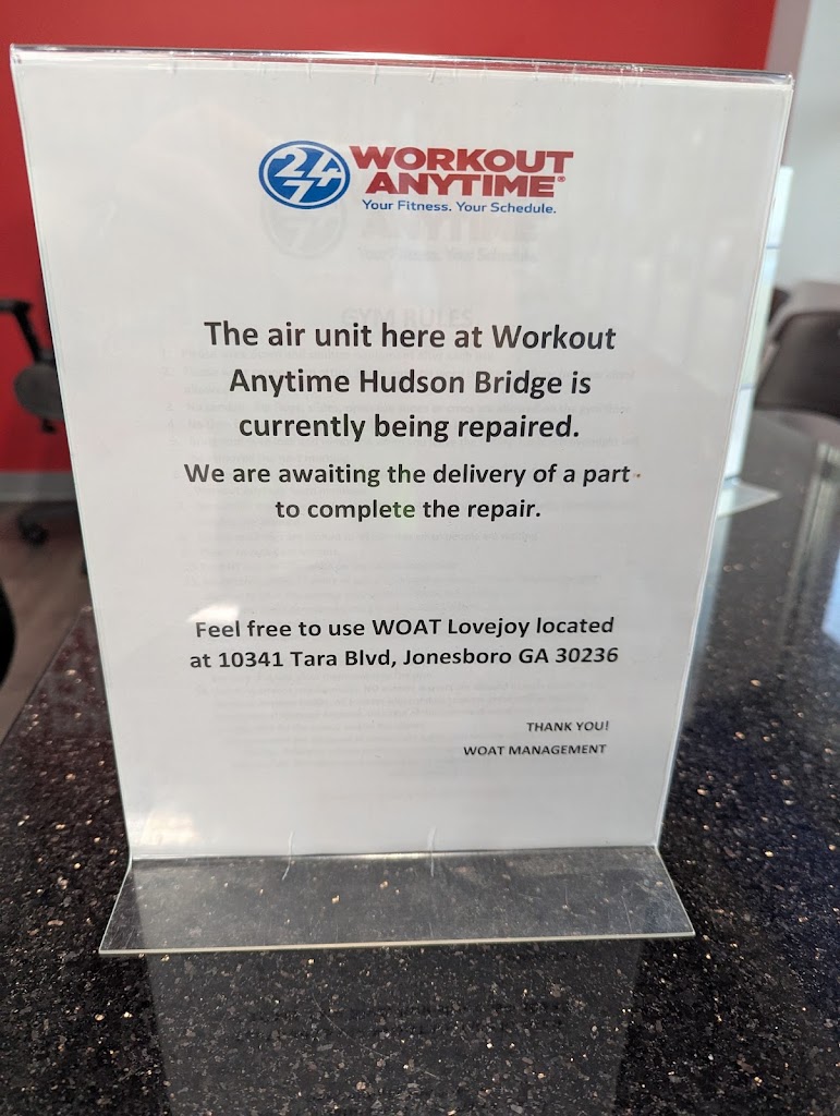 I was out of town and upon return found out my gym was closing in McDonough. I was told my only option was to travel 15 min to Hudson bridge which I did not wish to do. I promptly wrote an email as instructed by their staff informing them I was canceling my membership. the 30 day period was met however they attempted taking the S25 monthly in Jan which the credit card rejected. Call after call, after call. Now they sent me to credit agency and ended up paying $116. I COULD NEVER RECOMMEND WORKOUT ANYTIME GYM TO ANYONE!