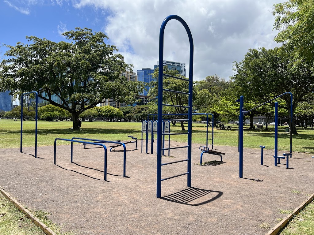Who wouldn't love the ala Moana beach park with all the exercise equipment they got going around in there thinking like three places for exercise it's a wonderful thing you got the beach you can swim you can go out of the water and exercise a little and the bathrooms are always maintained pretty decently