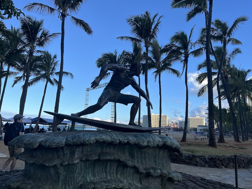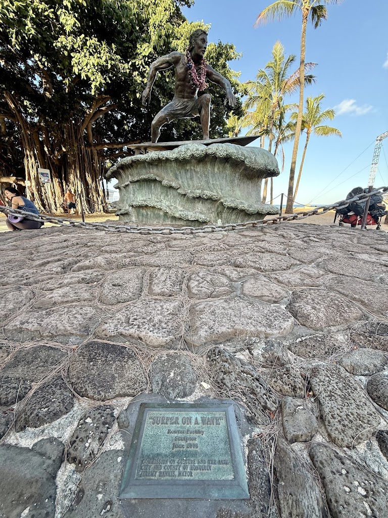 However, if you're driving, I would recommend putting Queen's Surf Beach into your maps. It'll lead you to parking and you'll be within walking distance of the statue - just walk towards Honolulu Zoo after you park and it'll be on the left-side of the sidewalk. There is free parking along Kalakaua Ave, which is where Queen's Surf Beach is. It does fill up quickly, but around this time, you have a higher chance of snagging a spot. Just note that this area is a great place for swimming, surfing, picnicking, running, walking the dog, etc. so there'll already be a good amount of people here.